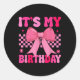 Pegatina Redonda Chica de cumpleaños Coquette rosa Estética Bow Gir