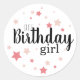 Pegatina Redonda Chica de cumpleaños lindo con estrellas rosas