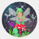 Pegatina Redonda Chica de elfo de hadas sentada en hongos mágicos