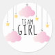 Pegatina Redonda Chica de equipo Estrellas Nubes Rosa Revelan Votos