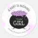 Haz que tus invitados voten a un chico o chica del equipo usando pegatinas en tu fiesta de revelación de género. El diseño de este pegatina chica del equipo presenta un caldero de brujas de Halloween lleno de torpe morado para una niña.