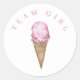 Chica de equipo Ice Cream Gender Reveal Pegatina redonda. ¿Cuál es el sexo de la primicia que revela pegatina redonda? Haz que tus invitados se involucren adivinando el género que va a ser el bebé. Haz que tus invitados voten en el Ice Cream Adivina el juego de cartas de género o simplemente usando al pegatina. Buen juego de rompehielos para el género temático del verano.