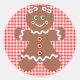 Esta sonriente chica de pan de jengibre tiene dos arcos en el pelo y botones rojos en su vestido. El fondo es gingham roja. Todo el arte original por mí.
