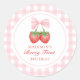 Pegatina Redonda Chica de fresa rosada Bow primer cumpleaños