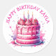Pegatina Redonda Chica de Pastel de Cumpleaños Rosado