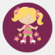 Pegatina Redonda Chica de patinaje sobre patinaje sobre patines