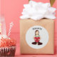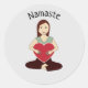 Pegatina Redonda Chica de yoga lindo sosteniendo el corazón rojo Na