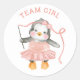 Pegatina Redonda Chica del equipo. El género revela fiesta. Juego d