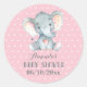 Pegatina Redonda Chica Elefante Baby Shower Rosa y Gris