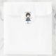 Chica de garrotes con pelo y zapatillas de deporte, collar de perlas y vestido con denim de jean azul sobre un fondo blanco. El texto se puede editar. Se puede cambiar el color de fondo.