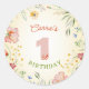 Pegatina Redonda Chica Floral de Flores Silvestres Primer Cumpleaño
