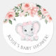 Pegatina Redonda Chica floral rosa Cutie Elephant Rubor Baby Shower