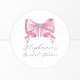 Pegatina Redonda Chica glamuroso con lazo rosa para baby shower nup