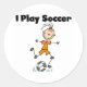 Un chica palo figura futbolista y texto que dice "¡Juego al fútbol!" en camisetas de fútbol, tazas, cartas, bolsos de té y otros regalos y prendas de fútbol que puedes personalizar en el lugar!