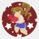 Un chica lindo del boxeador, llevando camisetas sin mangas blancas, los pantalones cortos azules del boxeo, los guantes de boxeo rojos, y ella hace el pelo rubio marrón claro/oscuro, atar detrás en una cola de caballo. Dibujan al chica del boxeador en un cutesy, simple, lineless, estilo del dibujo animado. Grande para cualquier persona que ame el encajonar, luchando, y se divierte.