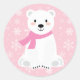 Pegatina Redonda Chica lindo oso polar invierno copo de nieve rosa