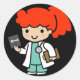 Un médica chica con exfoliaciones y abrigo de laboratorio blanco. Lleva un portapapeles, lleva un estetoscopio y sostiene una radiografía de hueso. Por el médica. El texto es personalizable.