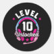 Pegatina Redonda Chica Nivel 10 Videojuego desbloqueado 10 cumpleañ