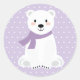 Pegatina Redonda Chica Polar Bear Baby Shower Purple
