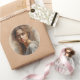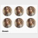 Pegatina Redonda Chica Retrato es un dibujo a lápiz de una mujer. E