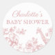 Chica rosa Baby Shower Safari Toile de Jouy Pegatina redondo clásico