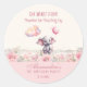 Pegatina Redonda Chica Rosa Cute Elefante Primer Cumpleaños Gracias