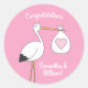 Pegatina Redonda Chica rosa de Stork Baby Shower Personalizado