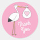 Pegatina Redonda Chica rosa de Stork Baby Shower Personalizado