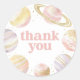 Digan gracias a sus amigos y familiares por asistir a la fiesta de cumpleaños de su pequeña con estos pegatinas con temas de oro y rosa en el espacio exterior.