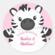 Pegatina Redonda Chica rosado zebra Baby Shower Safari