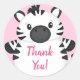 Pegatina Redonda Chica rosado zebra Baby Shower Safari
