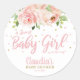 Pegatina Redonda Chica Rubor Pink Floral Baby Shower Gracias Por Fa