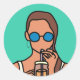 Pegatina Redonda Chica tomando té de burbuja adolescente moderno