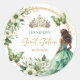 Pegatina Redonda Chica verde esmeralda Princesa Tiara Dulce Floral