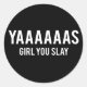 Pegatina Redonda Chica Yas Slay White Print