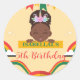 Pegatina Redonda Chicas afro unicornio afroamericanos Cumpleaños