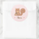 Pegatina Redonda Chicas De Acorn De La Ardilla Cuta Nombre Rosado