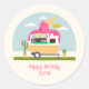 Pegatina Redonda Chicas de Camión de Hielo Cream Camper Cumpleaños