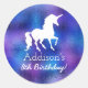 Chicas de la silueta de Relieve metalizado de imitación morado de Unicorn de cumpleaños Pegatinas. Utilícelo para bolsas de regalo, regalos o edición para cambiar texto para otros usos. Silueta blanca bonito de un unicornio sobre un fondo falso Relieve metalizado morado y azul. Personalizado con el nombre de chicas de cumpleaños con letra blanca y su edad. Un fiesta de unicornio divertido provee para un cumpleaños temático de unicornio. www.SamAnnDesigns.com