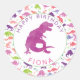 Pegatina Redonda Chicas Dinosaur Birthday Party personalizado morad