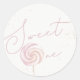 Pegatina Redonda Chicas Dulce Rosa Un Candy Helado Primer Cumpleaño
