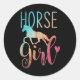 Pegatina Redonda Chicas ecuestres Chicas Caballo