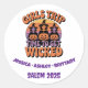 ¡Selle sus planes espeluznantes con estilo! 🧙 ♀️ Este pegatina cortado de mugre muestra tres brujas iluminadas por la puesta del sol sosteniendo farolillos de jack o’ bajo el lema retro "Chicas Viaje tiempo para ponerse malvados". Personalice la línea superior con los nombres de su trío: Jessica ・ Ashley ・ Brittany (o cualquier equipo que desee) y añada "Salem 2025" (u otro destino + año) bajo el diseño. Perfecto para laptops, maletas, botellas de agua, o álbumes que documentan su deslumbrante escapada. El vinilo resistente al clima mantiene los colores atrevidos y los recuerdos de tu caverna vivos!