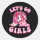 Pegatina Redonda Chicas Vamos Botín de Vaquera Sombrero Disco Despe