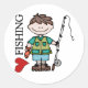 Pegatina Redonda Chico de pelo marrón que me encanta pescar