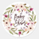 Pegatina de ducha de bebé floral con corona floral de acuarela y caligrafía de pincel moderna. Esta pegatina es perfecta para duchas de bebé de primavera y otoño. Están disponibles artículos coincidentes y similares.