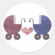 Pegatina Redonda Chico y Chica gemelos bebé, diseño de arte de Pram