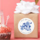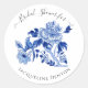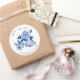"Chinoiserie Floral Blue White Bird Bridal Shower Classic Round Pegatina". Colores acuáticos de acrílico pintados a mano sobre un pájaro de tela en un árbol. La rama de Peony tiene un diseño chino vintage para un diseño moderno y moderno. Todas las obras de arte fueron creadas por la artista y diseñadora con licencia internacional Audrey Jeanne Roberts, copyright.