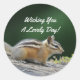 Esta pegatina de la ronda incluye una pequeña foto de un chipmunk sentado en un registro con el mensaje "¡Deseándote un día encantador!". ¡Genial para los aficionados especiales a los envíos, los recortes, la decoración y los chipmunk!