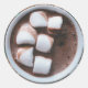 chocolate caliente en una taza y platillo, malvaviscos cremosos flotantes. Se ve a fuego lento, chocolate y delicioso.